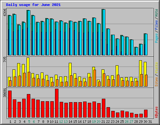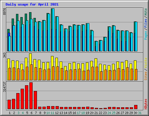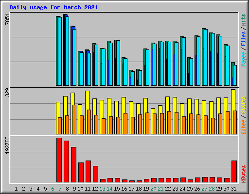 | Day | Hits | Files | Pages | Visits | Sites | KBytes | ||||||