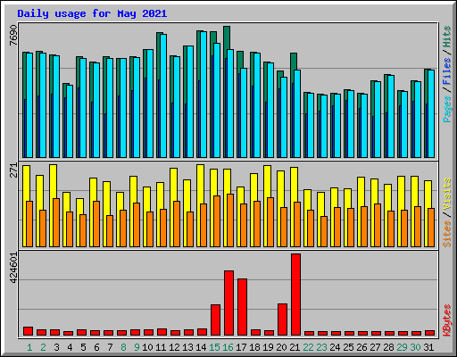 | Day | Hits | Files | Pages | Visits | Sites | KBytes | ||||||